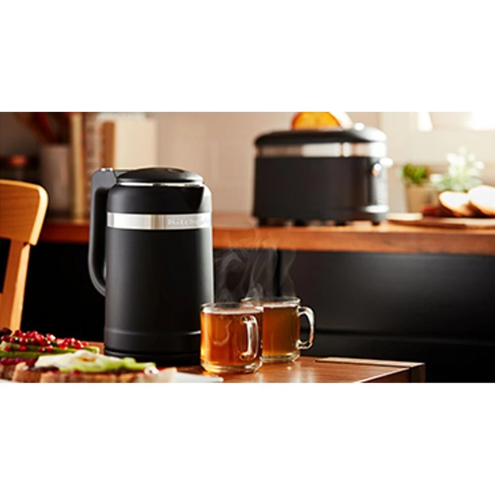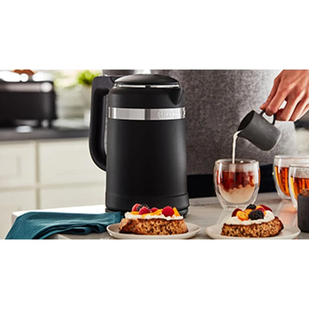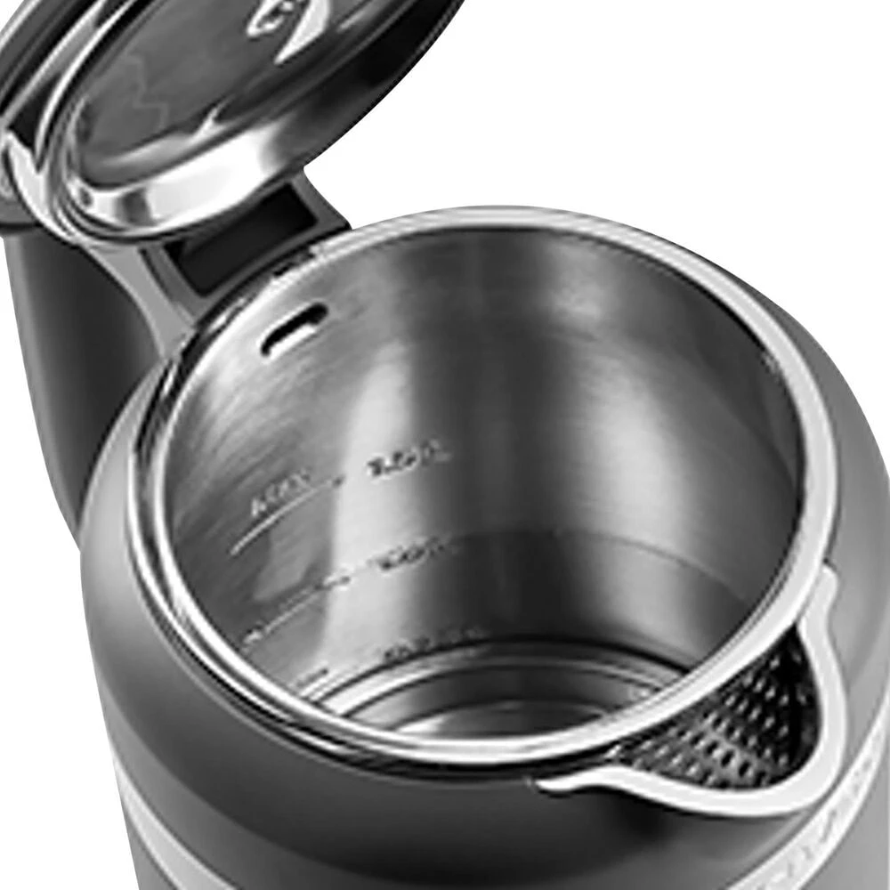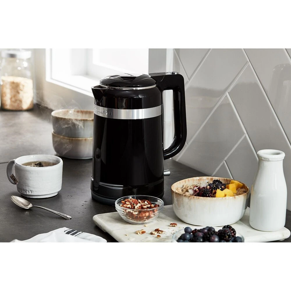 Boil water in minutes with this 1.5 liter electric kettle, great for single or multiple servings of tea, coffee, cereals and so much more. This kettle features dual-wall insulation to keep the inside hot and the exterior temperature lower, an easy pour, push-button lid and an all-metal stainless steel interior.