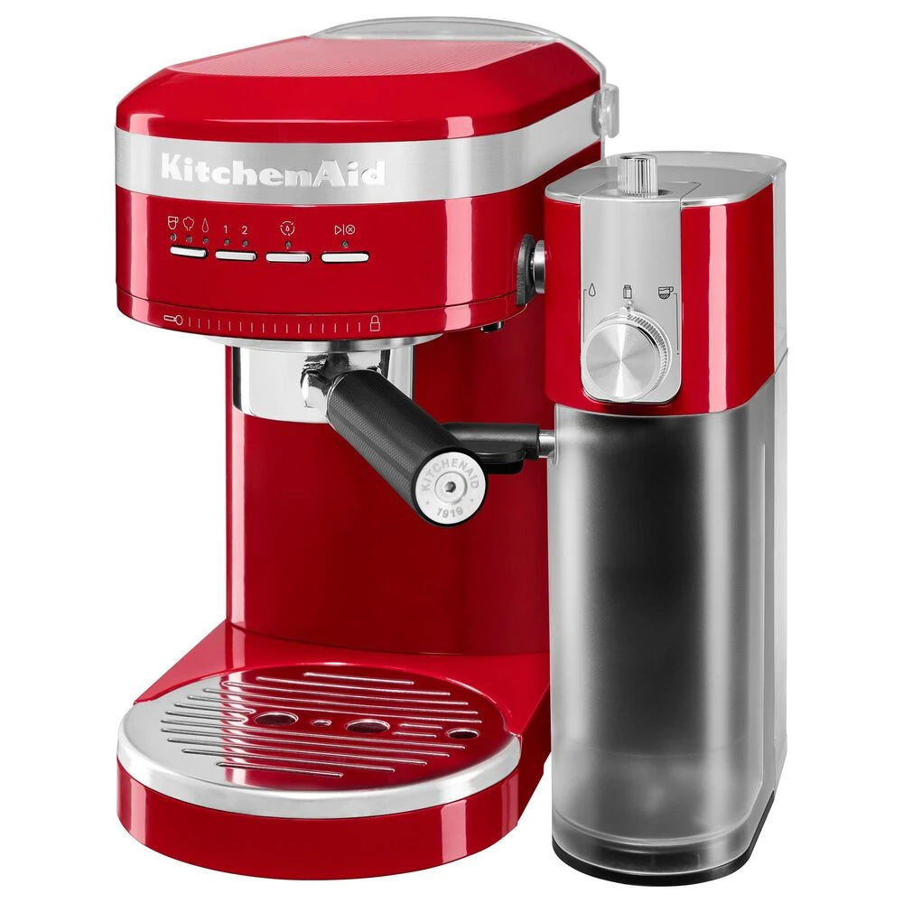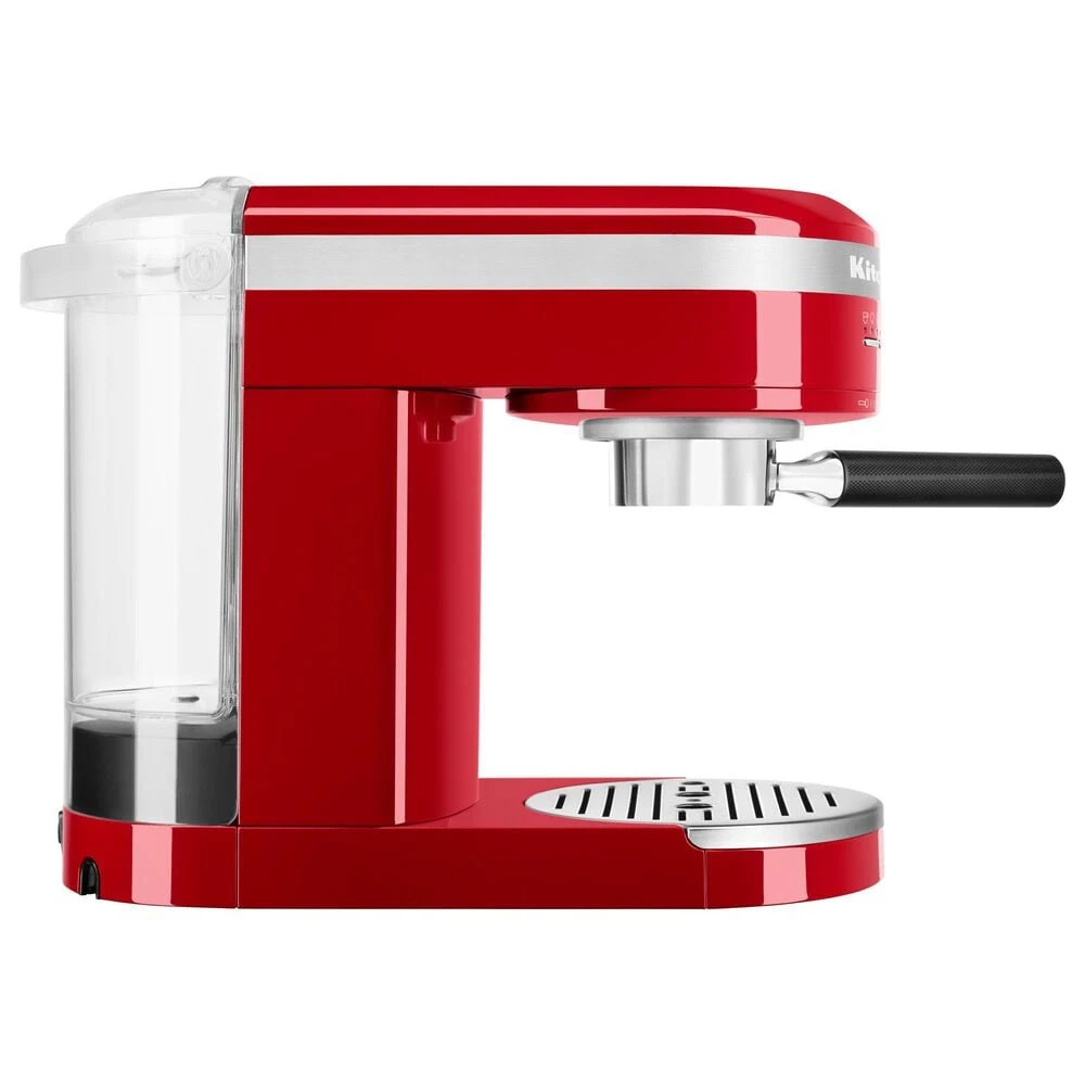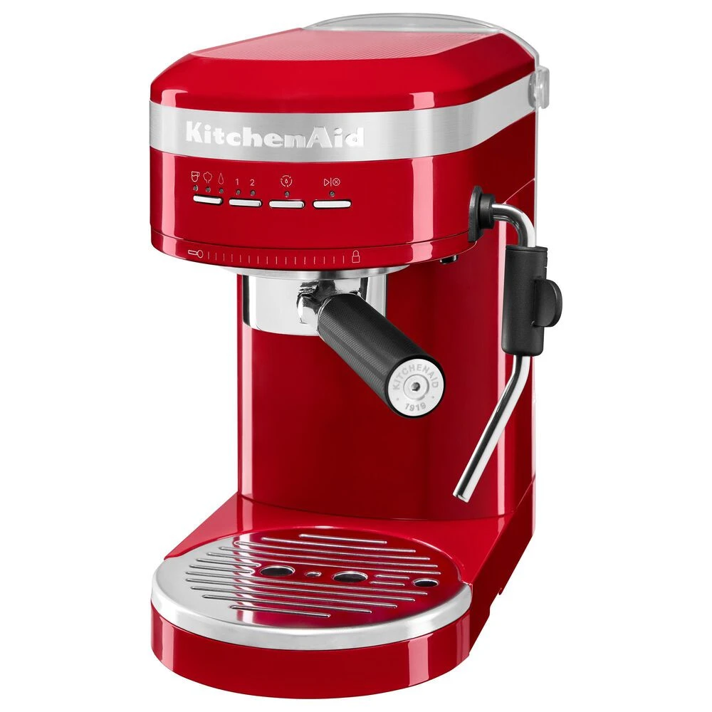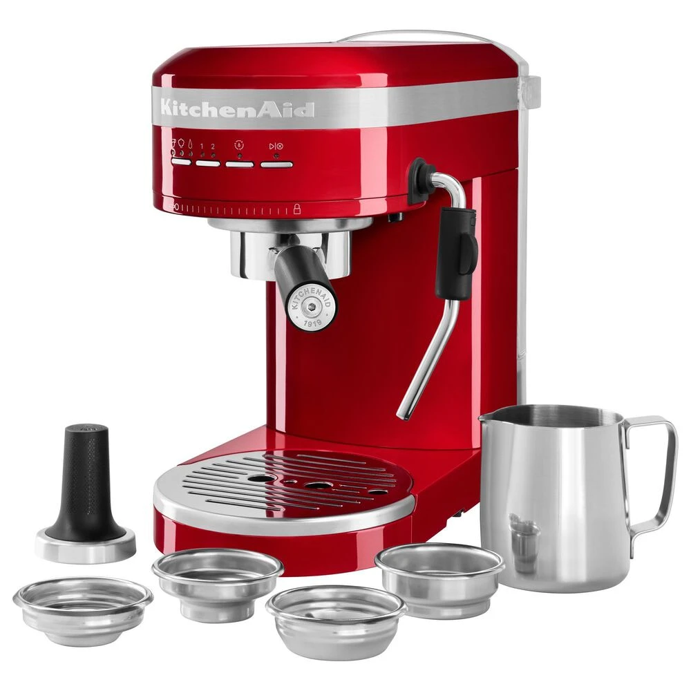 Enjoy espressos, lattes and cappuccinos, just the way you like, with the KitchenAid Metal Semi-Automatic Espresso Machine. This is the first residential espresso machine that features dual, smart temperature sensors, that maintain the perfect brewing temperature shot after shot. The fast-heating thermocoil technology heats water up to the ideal brewing temperature in less 45 seconds. The low pressure pre-infusion and 15-bar Italian pump work together to make a deliciously rich, thick crema.