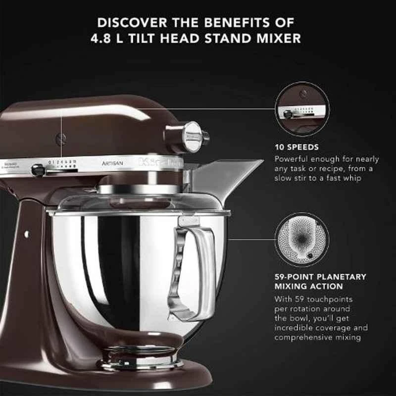 Planning to get creative with cooking? Bring home Kitchenaid 5KSM150PSBES Artisan Classic Tilt Head 300W Espresso Stand Mixer with 1 Jar, 80211. This the ultimate helper for you in your kitchen. This machine works at a power of 300 W. The turbo power mixer will grind even the hardest spices easily for you. With a warranty period of 5 Years, you will not have to worry about the performance of this mixer. These mixers are eligible to work for long hours! All the jars have leak proof lids. The jars are made of stainless steel and good quality plastic. There are no chances of dents and breakouts. Whereas the main unit is made of a heavy duty motor which comes with multiple speed settings. The structure of this unit is made of the best plastic, which is also heat resistant. The blades of each jar are super sharp made out of stainless steel. The whole unit is made out of the best quality metal you will never have to worry about it getting oxidized. Bring home KitchenAid mixer grinder and add an amazing appliance to your kitchen accessories.
