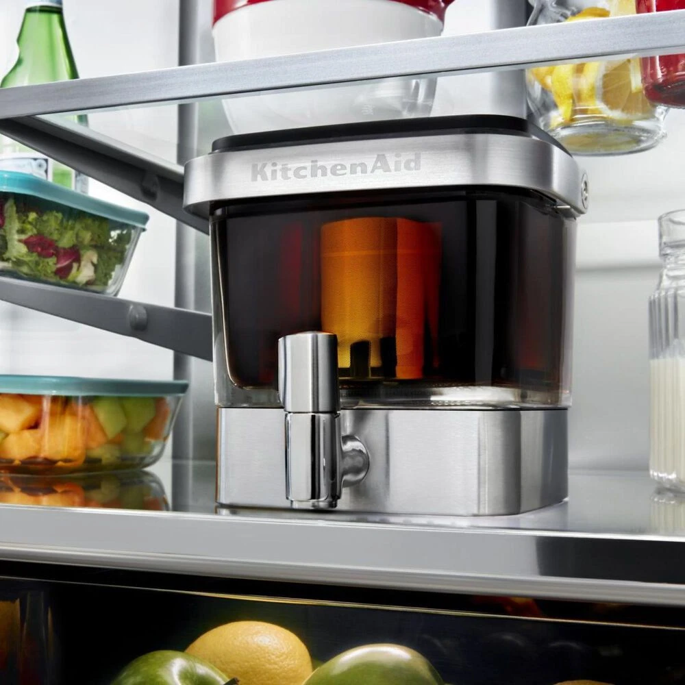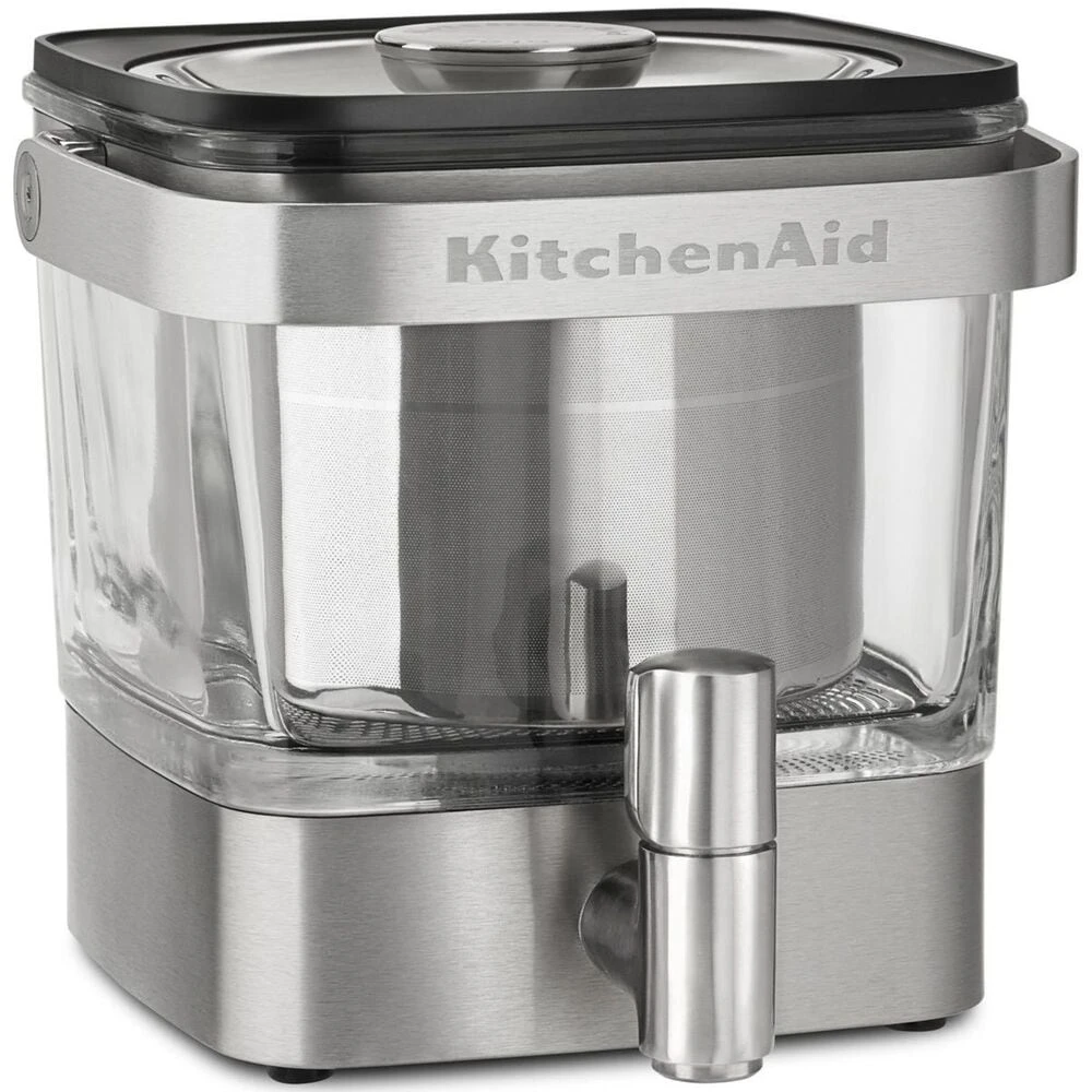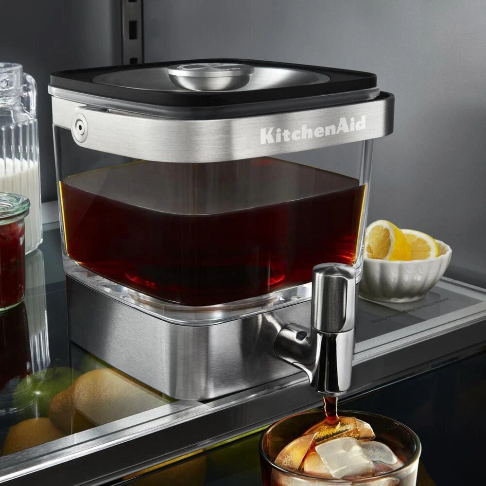Brew your favorite elixir in an instant with this KitchenAid Cold Brew Coffee Maker. Rendered in an easy to use design, this coffee maker with a stainless steel tap boasts of a reusable stainless steel steeper can make up to 14 servings. This coffee maker can brew and store 28 oz. of delicious coffee at a time. Flaunting an elegant stainless steel design, it aesthetically fits any refrigerator or kitchen counter.