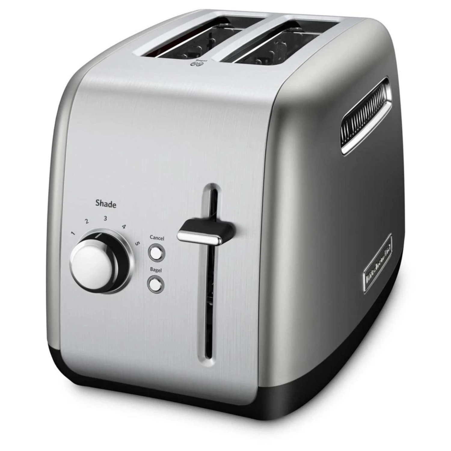 An attractive and functional addition to any countertop, the KitchenAid® 2-Slice Toaster offers a variety of functions for everyday use. Toast bread to your desired shade, precisely toast the cut sides of bagels, defrost and toast frozen food or reheat previously toasted food in under a minute. Plus, a high lift lever makes it easy to remove whatever youre toasting.